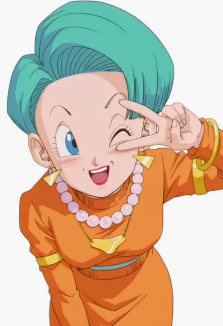 bulma, aqua hair, short hair, blue eyes, lipstick,