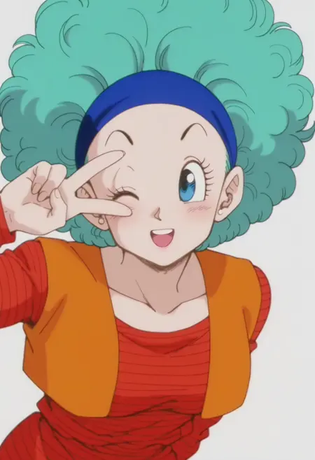 blue hairband, red dress, short dress, long sleeves, striped dress, orange vest,