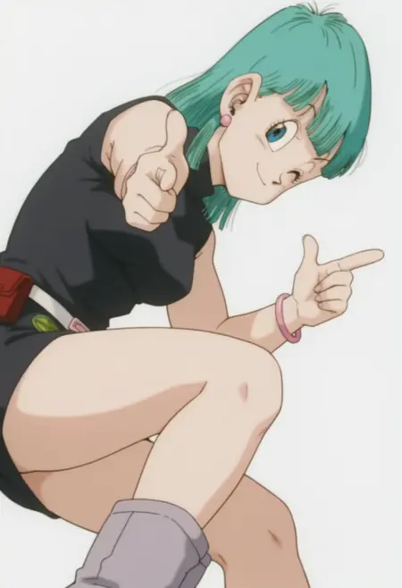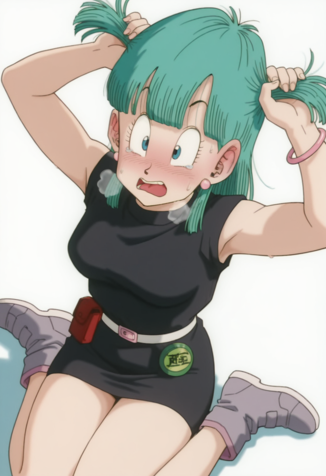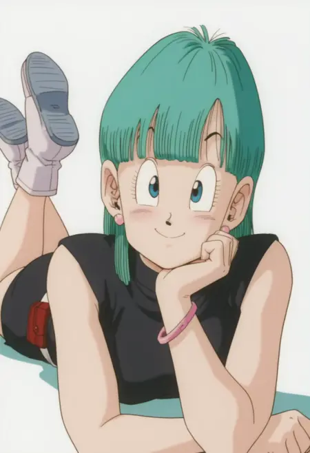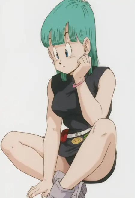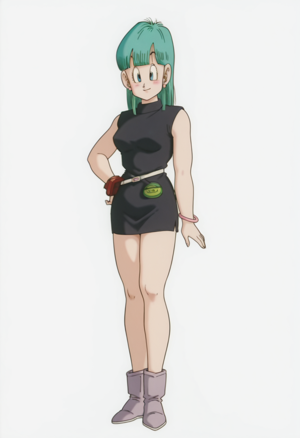 bulma, blue eyes, aqua hair, medium hair, blunt bangs,
