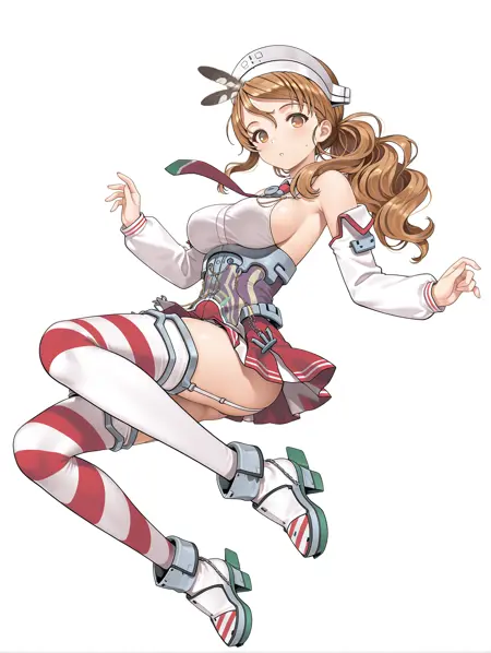 服装 ・l_clothes,detached sleeves,red necktie,bare shoulders,sideboob,corset,red miniskirt,garter straps,striped thighhighs,rudder footwear,