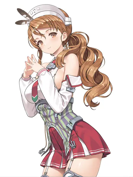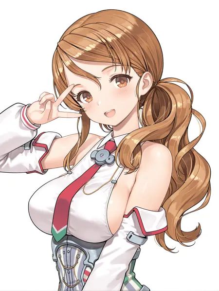 触发词 ・BB_littorio,brown hair,wavy hair,brown eyes,low ponytail,