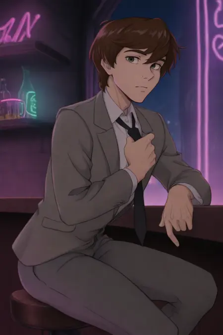 映画のラインアートの影響で、AIは彼に顔の髭があると誤認したため、ネガティブプロンプトに含めてください。