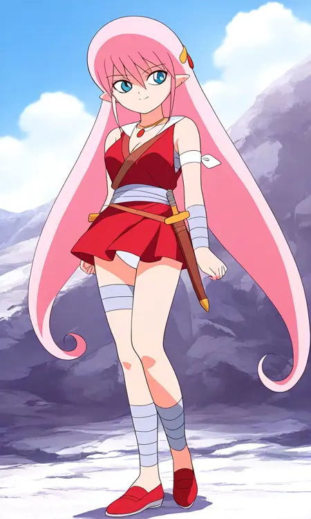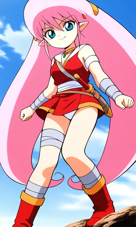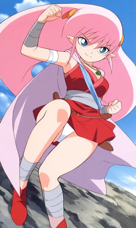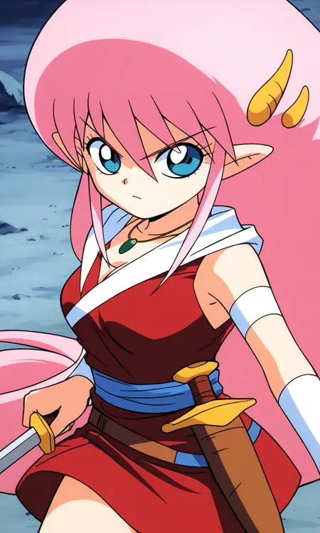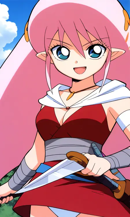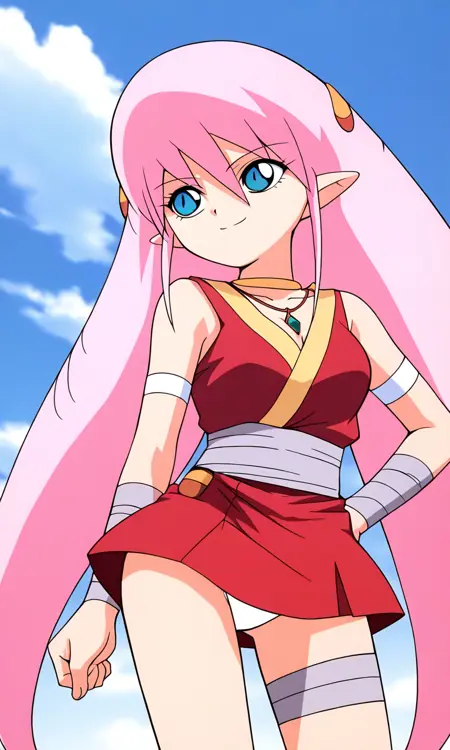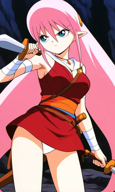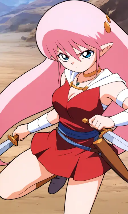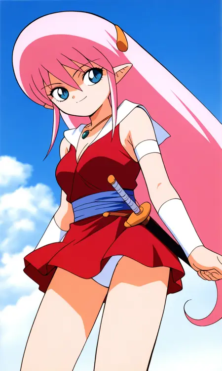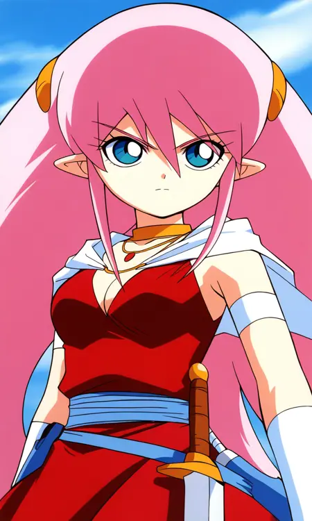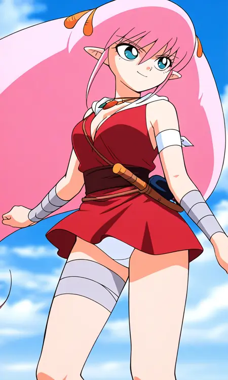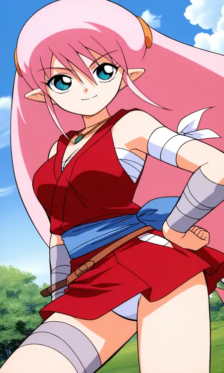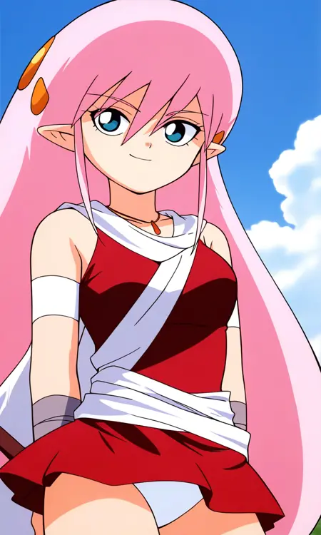 TVアニメ「ヤマトタケル」のヒロイン、オト・タチバナです。かないみかの代表的キャラの一人ですが、番組が不人気で3クールで打ち切りとなったため、いちおう完結はしてるものの、本来のストーリーをかなりはしょったのでラスボスヤマタノオロチとの決着が凄いあっさりした味気ないものになってしまいました・・・OVAもかなり半端な出来だったのが悲しい・・・でも好きなキャラので作ってみました。かないみかボイスで「兄さん」呼びの妹キャラはいいものです!あとこの子とにかくパンチラが多いですw いい時代でしたね。番組の途中でオロチに洗脳されて悪落ちしてしまうんですがそっちは顔が別人で学習しても覚えてくれませんでした。おそらく個別loraで作らないとダメみたい。