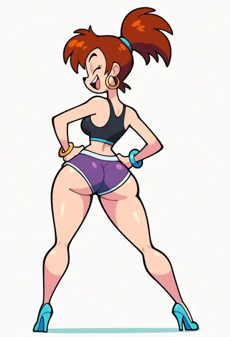 - 高跟鞋,宽臀,棕色头发,睫毛,短发,耳环,