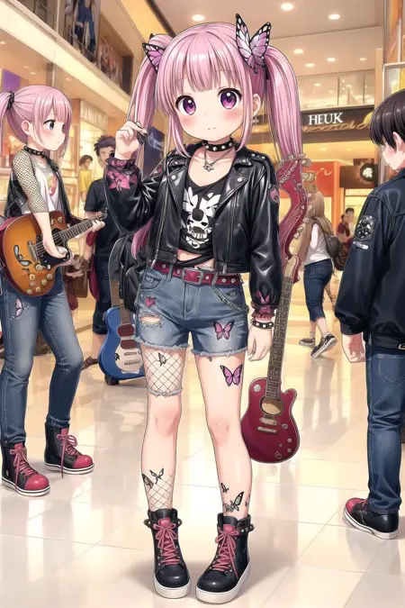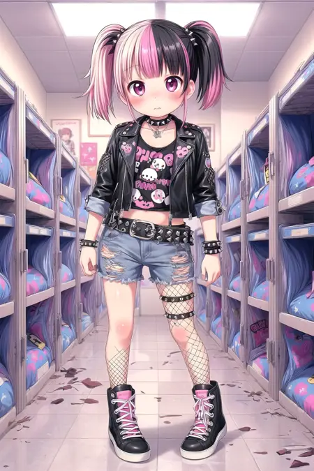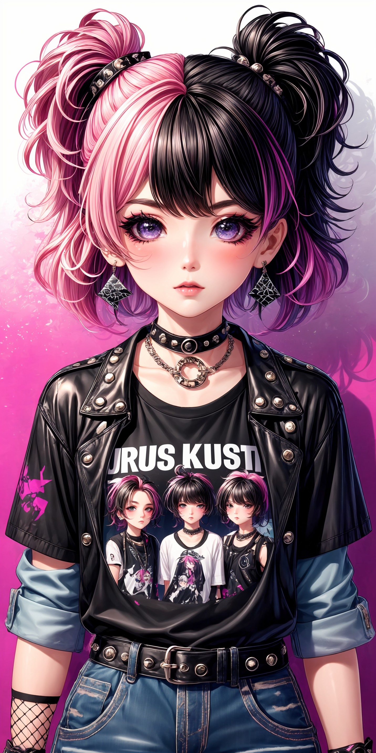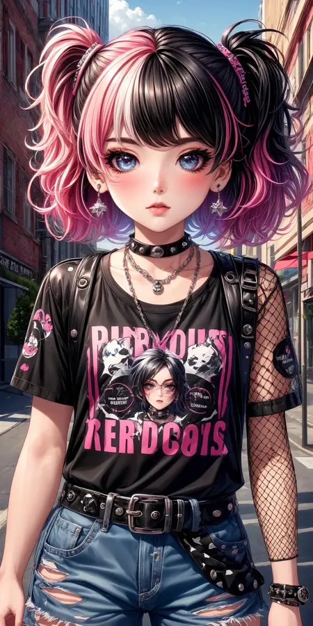 청소년 펑크 스타일의 이미지와 의상을 생성합니다.