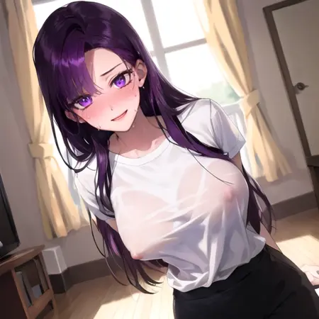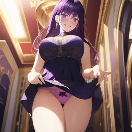 1. 最短的激活标签序列:1girl, Medea solon, 紫色头发,紫色眼睛,正式服装,长发,耳环,