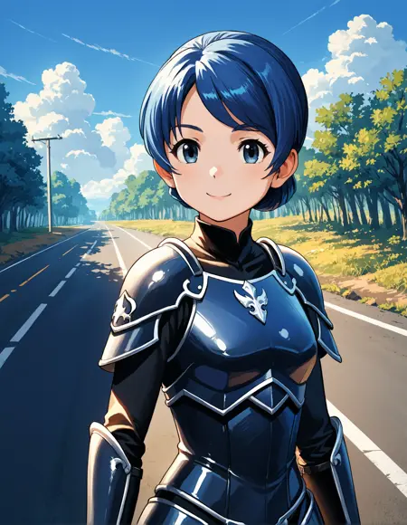 외모: 파란 머리, 머리 뾰족, 파란 눈