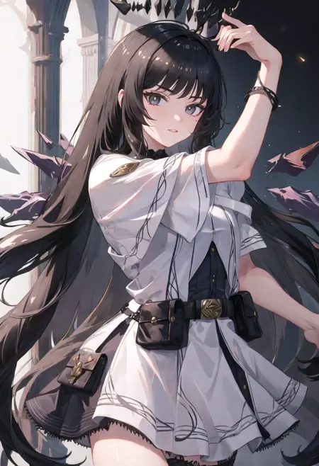 트리거 단어는 virtuosa_arknights이며, 필터링된 태그는 black_hair, long_hair, blunt_bangs, mole, mole_under_eye, straight_hair, halo, sidelocks, black_halo, dark_halo, broken_halo, hime_cut, very_long_hair, black_wings, wings, energy_wings, detached_wings, pale_skin, black_eyes, breasts, colored_inner_hair, two-tone_hair, multicolored_hair, eyelashes, white_pupils, bright_pupils, grey_hair, medium_breasts, floating_hair, ahoge입니다. 어떤 특징(예: 머리카락 색상)이 일정 시점에서 불안정할 때, 이 태그들을 프롬프트에 추가할 수 있습니다.