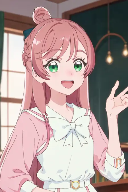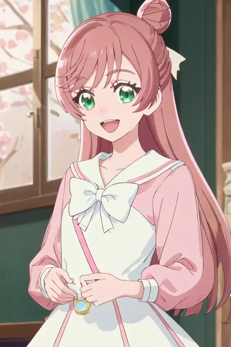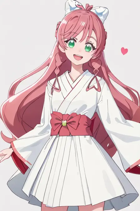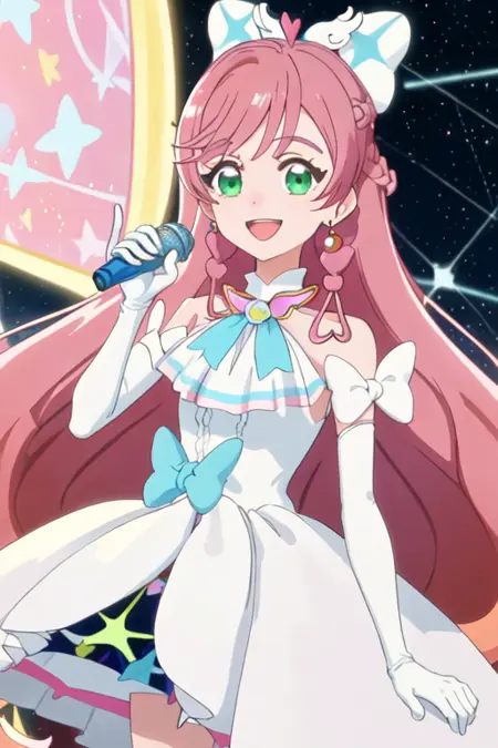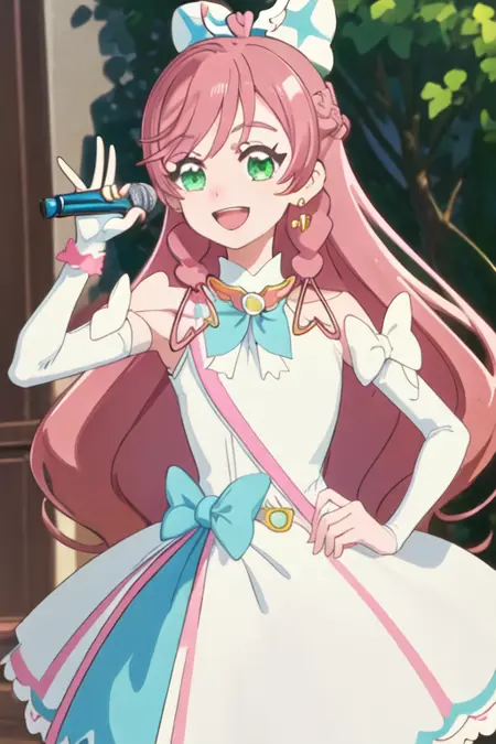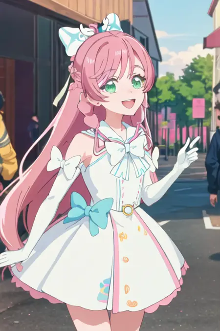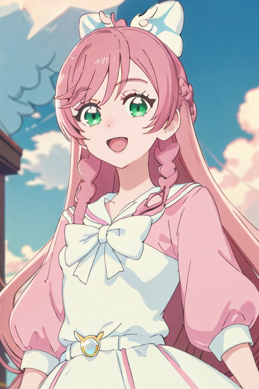 트리거 단어는 cure_prism_hirogaruskyprecure이며, 권장 태그는 best quality, masterpiece, highres, solo, {cure_prism_hirogaruskyprecure:1.15}, long_hair, green_eyes, pink_hair, bow, open_mouth, bangs, smile, white_bow입니다.