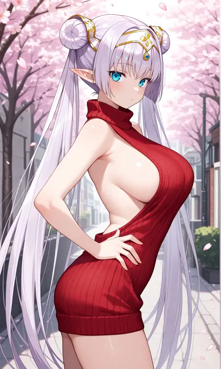 britomart (fate), 흰 머리카락, 매우 긴 머리카락, 트윈테일, 더블 뭉치, 머리 뭉치, 머리띠, 날카로운 귀, 파란 눈
