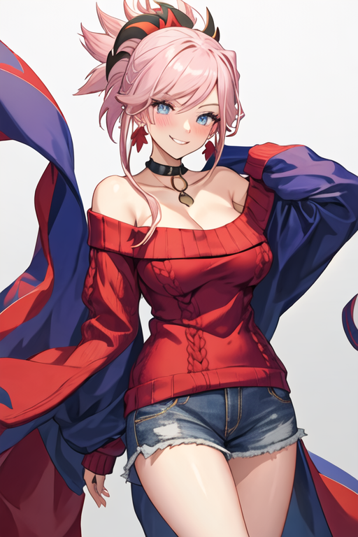 - The pruned character tags are pink_hair, blue_eyes, breasts, ponytail, long_hair, earrings, hair_ornament, large_breasts, bangs, asymmetrical_hair. You can add them into prompts when core features (e.g. hair color) of character is not so stable.