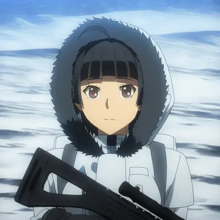追加:軍服、手袋、膝丈ブーツ、ライフル、フード、毛皮のトリム