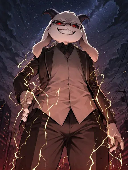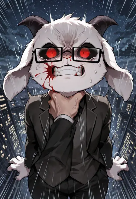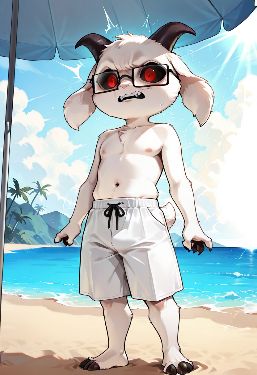 触发词:1boy, shortstack, anthro, Paul, dokkaebi, 红眼睛, 黑色巩膜, 白色毛发, 山羊耳朵, 角, 獸人,