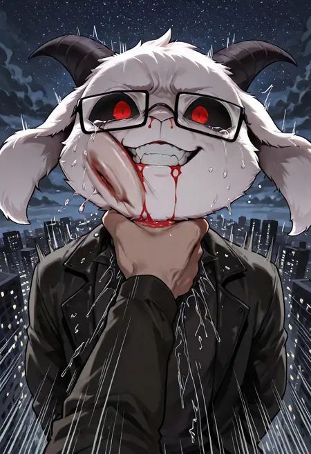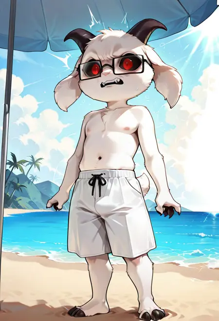 트리거: 1boy, shortstack, anthro, Paul, dokkaebi, 빨간 눈, 검은 공막, 흰 털, 염소 귀, 뿔, 퓨리,