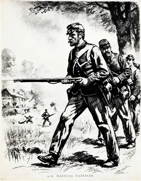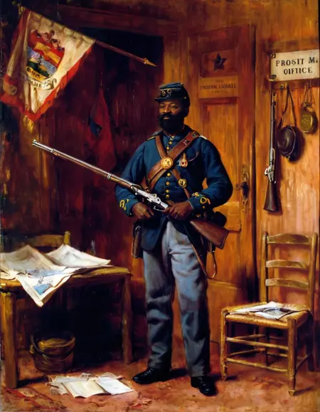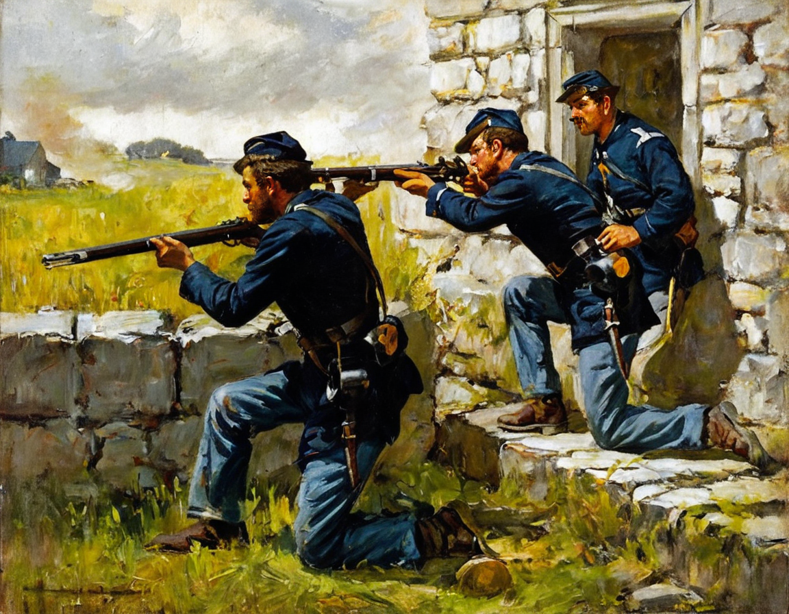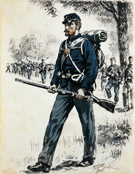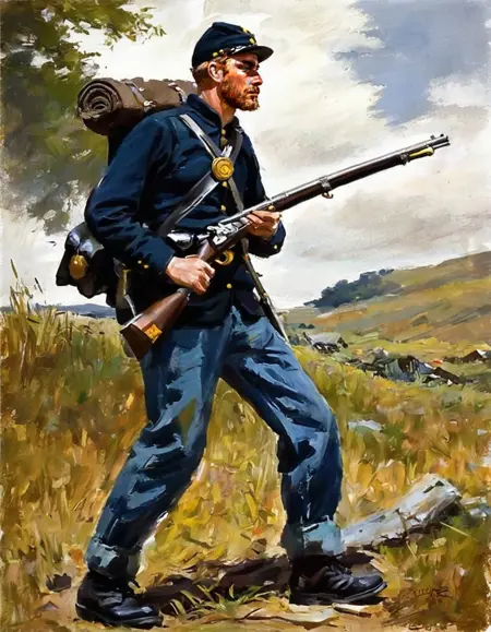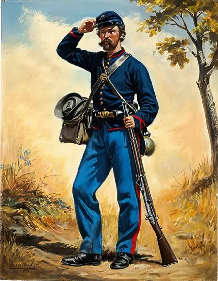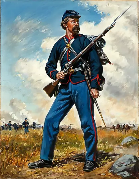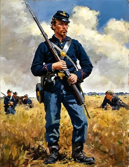 このLoRAは多くの内戦時代の画像を使って学習されているため、ケピ帽を明示的に指定すると、よく再現されます。