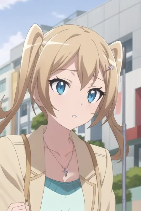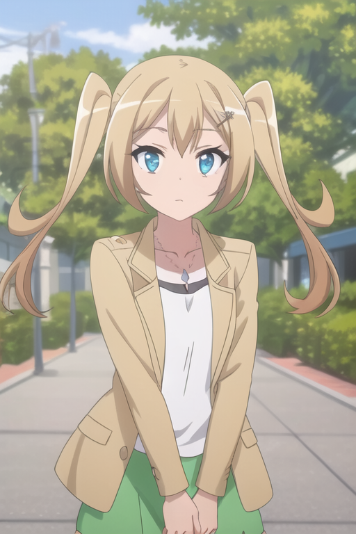 Trigger Words: sato hana, light brown hair, twintails, long hair, blue eyes