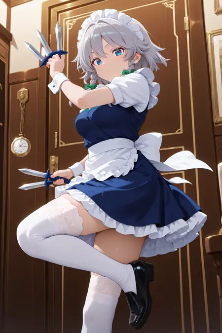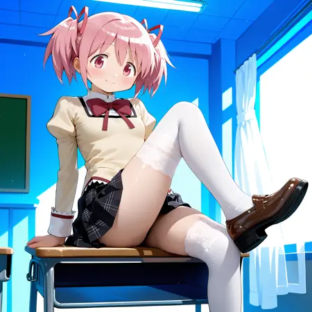 このLoRAは、縦リブ編みの本体に広めのレーストップを組み合わせたニーハイソックスを再現します。