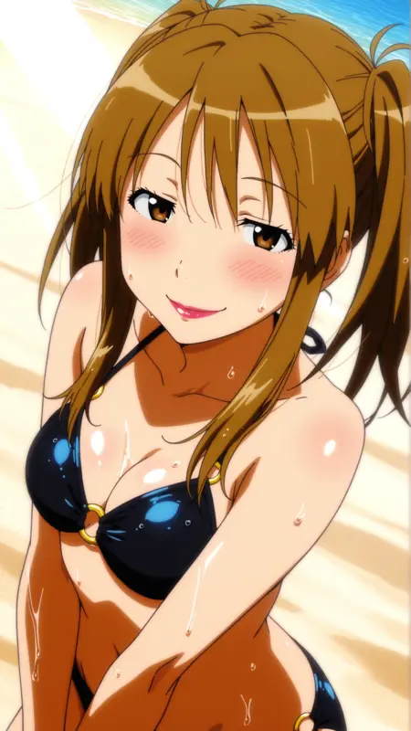 Appearance:brown hair, long hair,brown eyes,lipstick, makeup,twintails, sidelocks,