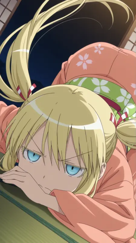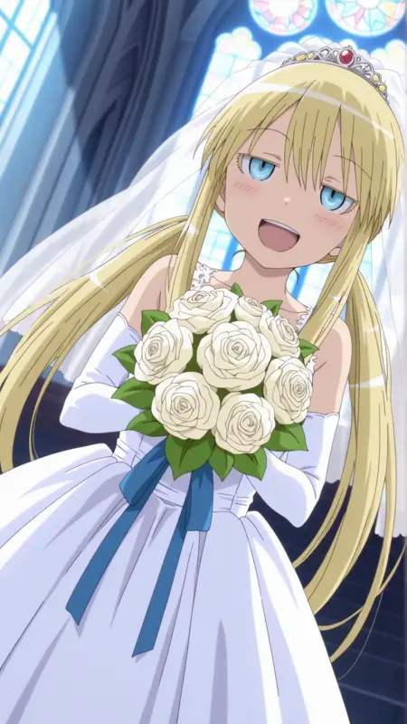 外观:金发,长发,蓝眼睛,斜视,彩色睫毛,两侧扎起,双马尾,
