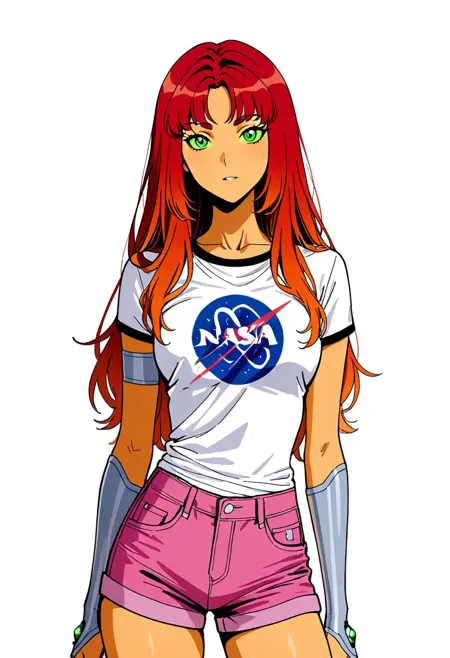 statufia, 1소녀, 점 모양 eyebrows, 빨간색 머리, 싱글, 녹색 공막, 진한 녹색 눈, 긴 머리, 주황색 피부,