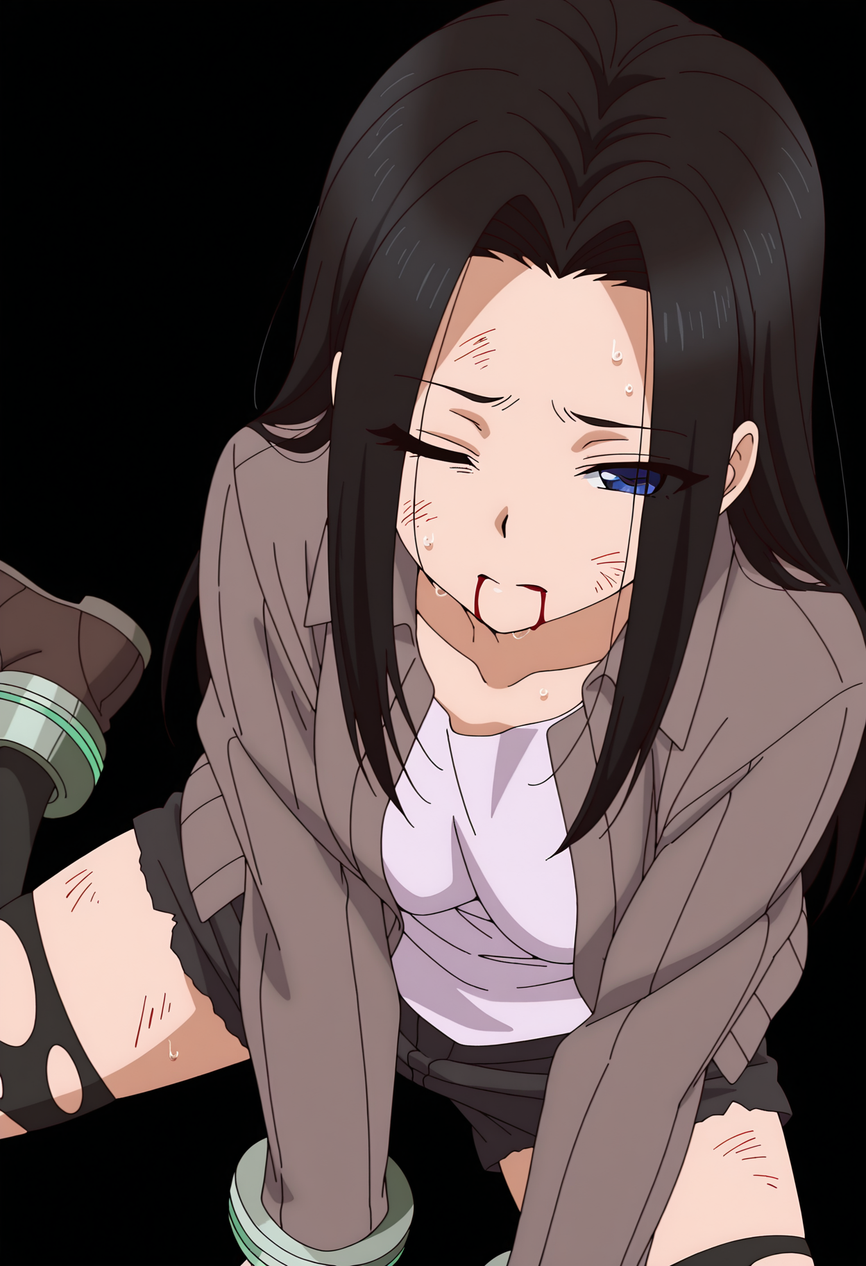 1girl, solo, asuka kiryu, long hair, black hair, blue eyes