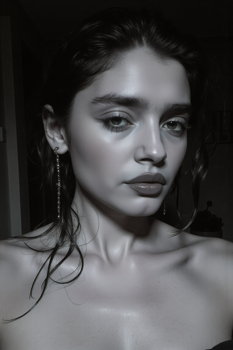 这个LoRA也无意中学到了一些其他特征(并非100%):湿衣服、水滴、风格化的黑白照片。