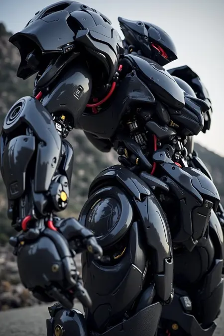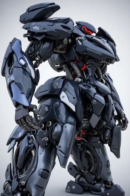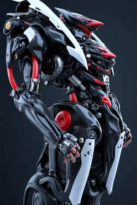 由有机板精心设计的机器人形象,并配有大量活塞的显著组合