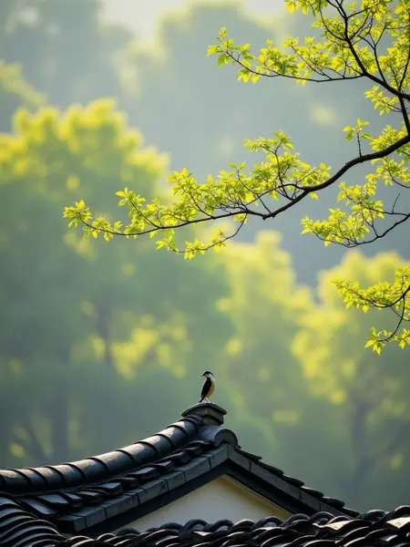 **ベースプロンプト:**木と鳥を伴う中国伝統建築