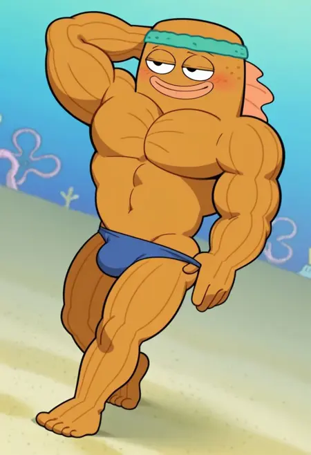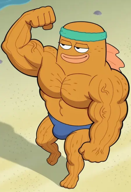 트리거 단어: big fish (스폰지밥 스ク웨어팬츠), 청동갈색 피부, 물고기 소년