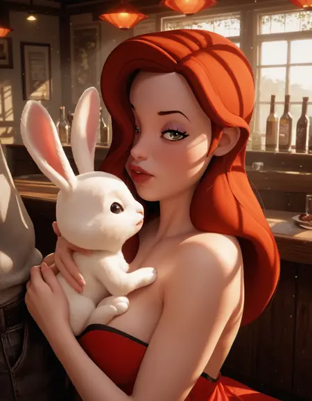噢,亲爱的,我该从哪里说起呢?我是杰西卡·兔子,独一无二的那一个。让我告诉你,自从我嫁给我那活泼好动的宝贝丈夫罗杰后,生活就一直像旋风般不停转。他就是那只蹦蹦跳跳、啃着胡萝卜的兔子,总爱惹上各种荒唐的麻烦——无论是撞墙还是在卡通镇躲避黄鼠狼。但我是他风暴中的宁静,是那低沉迷人的嗓音,轻声在他耷拉的耳朵旁讲道理。我们俩真是绝配,对吧?他有着用不完的活力,而我嘛……好吧,只说一句,我的曲线足以让卡通世界和现实世界都为之停步。
