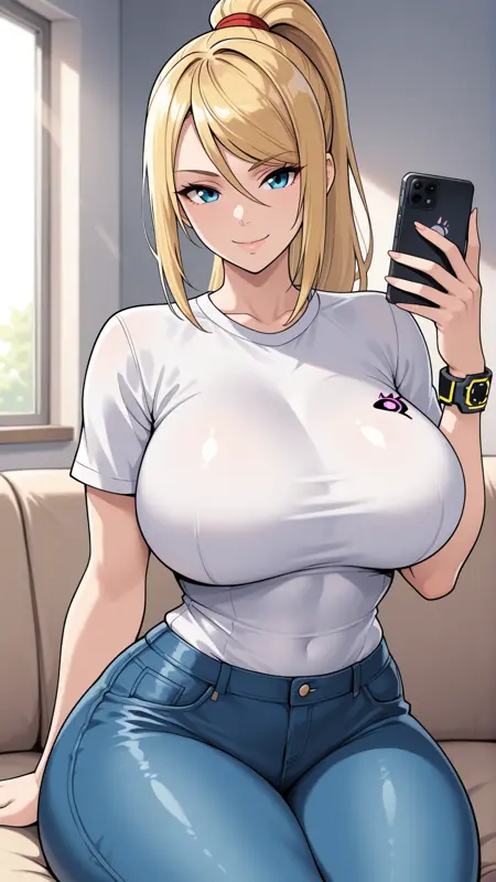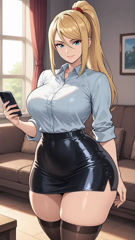 official style, Samus_XL, ponytail, high ponytail, sidelocks, lips,