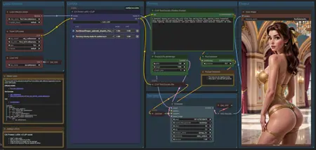 기본 ComfyUI Flux 워크플로우에 내 리믹스를 적용했습니다. rgthree Power LoRA에서 영감을 받아 만든 내 맞춤 노드 EA Power LoRA를 추가했습니다.