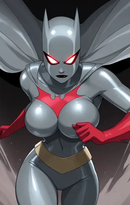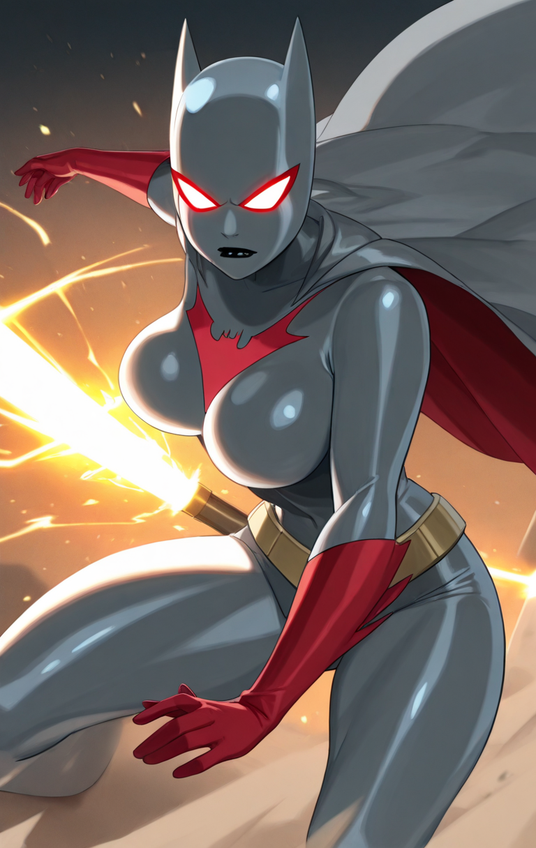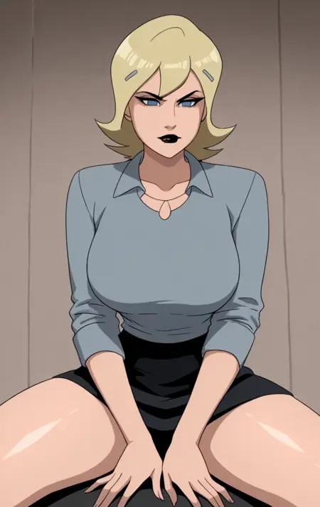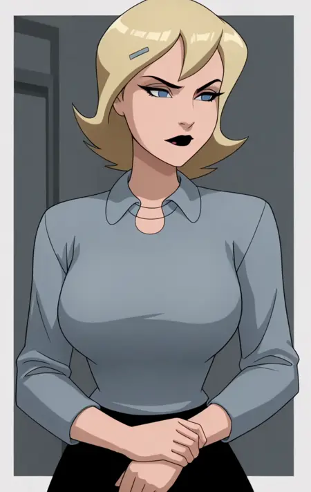 | トレーニングワード | 1girl, solo, breasts, short hair, blue eyes, shirt, skirt, blonde hair, long sleeves, medium, grey hair, hairclip, black skirt, grey shirt, v-shaped eyebrows, black lips, black eyeshadow, facial hair ornament, highleg,b4tg1rlコピーしました! 1girl, looking at viewer, mask, cape, colored skin, colored sclera, glowing eyes, grey skin, superhero,b4tg1rl,コピーしました! |