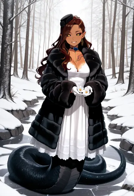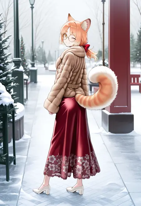 Trigger words: fur coat, long sleeves coat, fur collar, fur trim,
