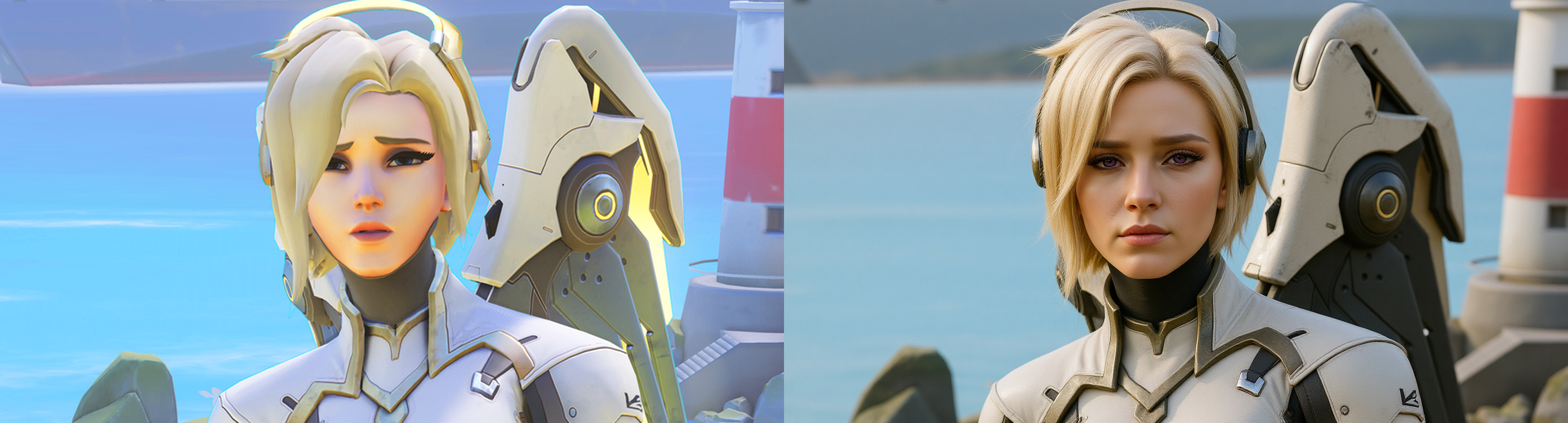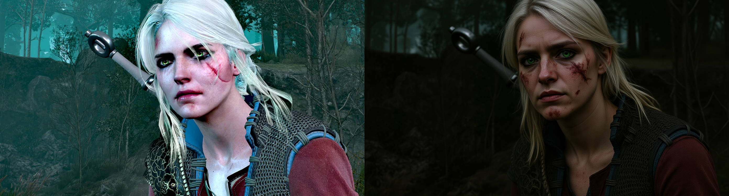 LoRA: Flux 컨텍스트 – 게임 캐릭터를 실제 사진으로 변환