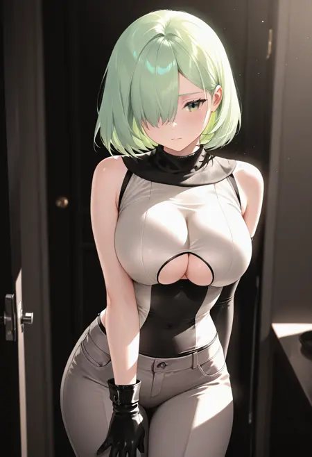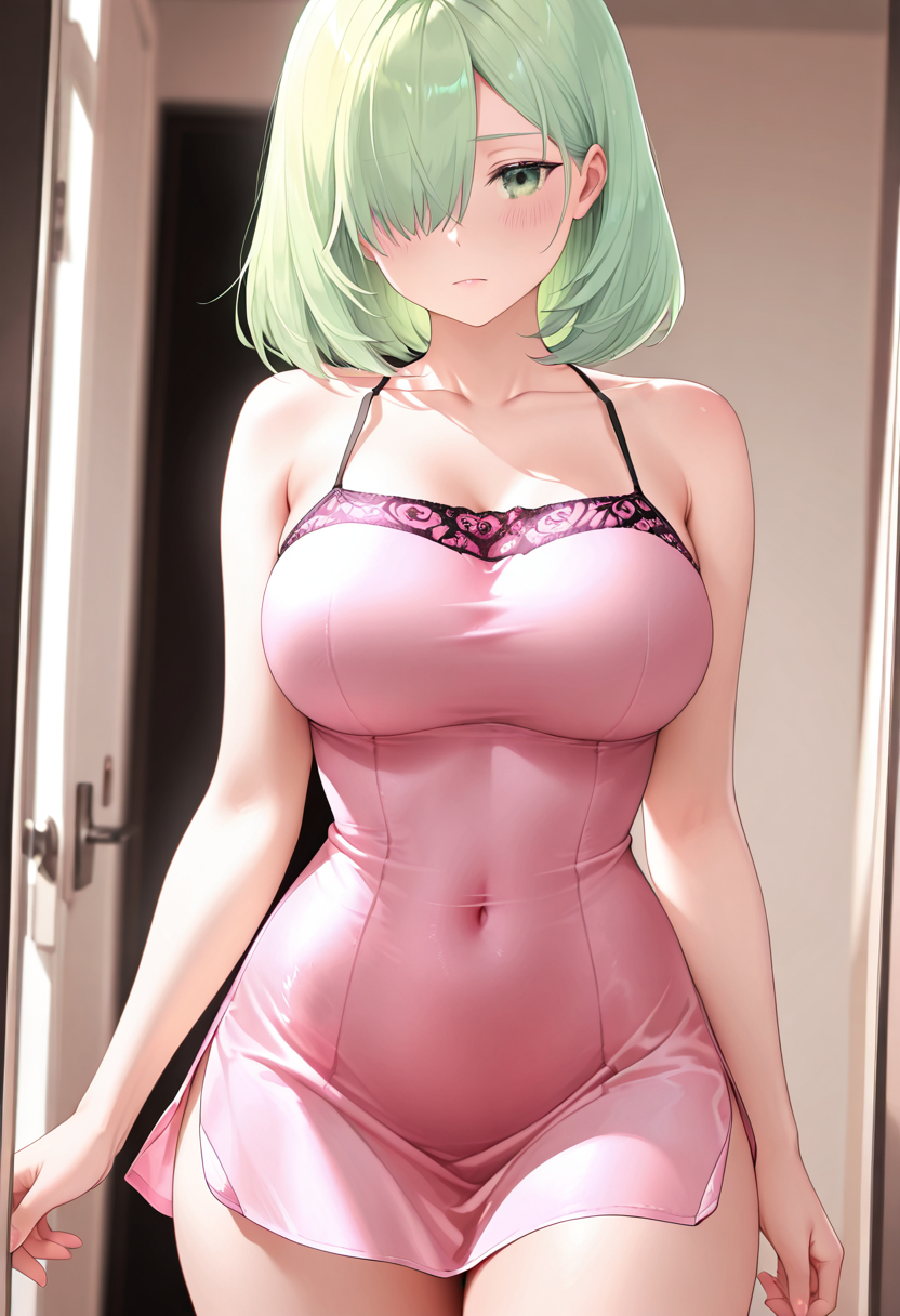 | 训练词汇 | liweiya, clothes1, 1girl, underboob cutout,green hair, solo, green eyes, hair over one eye, large breasts, short hair, black gloves, mole, cleavage cutout, asymmetrical gloves,grey pants,grey clothes已复制! 肚兜:liweiya, clothes2, 1girl,green hair, solo, green eyes, hair over one eye, large breasts, nightgown, short hair, bare shoulders, medium hair, short dress,underwear, pink dress,covered navel, collarbone已复制! |