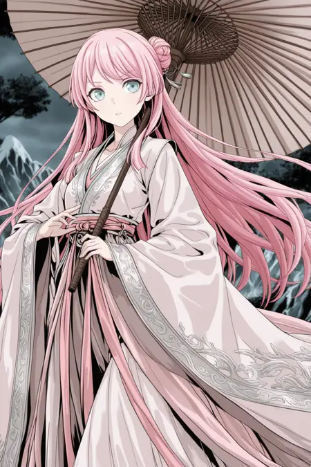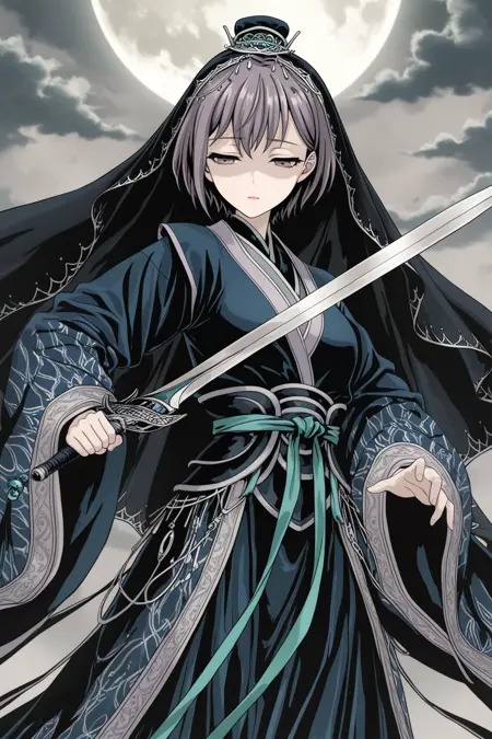 このLoRAはモバイルゲーム『ファントムブレード3』から学習したもので、独自の水墨画風と東洋的な衣装デザインを特徴とするキャラクターの立ち絵スタイルを再現しています。私は単なる愛好者として、趣味で使用しています。