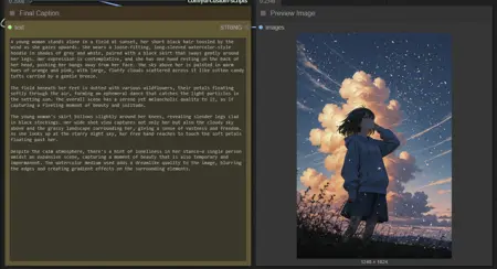 이 워크플로우는 캡션 생성 및 태그 처리를 제어하는 세 가지 주요 노드를 중심으로 구성됩니다. 각 노드 사용법은 다음과 같습니다: