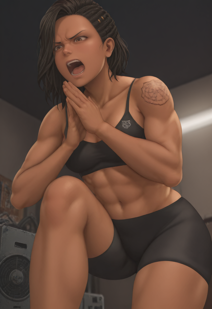 bike shorts, black sports bra