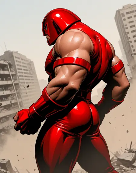 このLoRA向けのプロンプトは以下の通りです:(Juggernaut, muscular, armor, )
