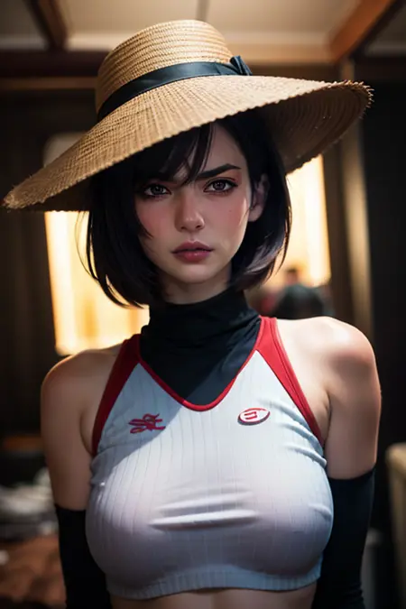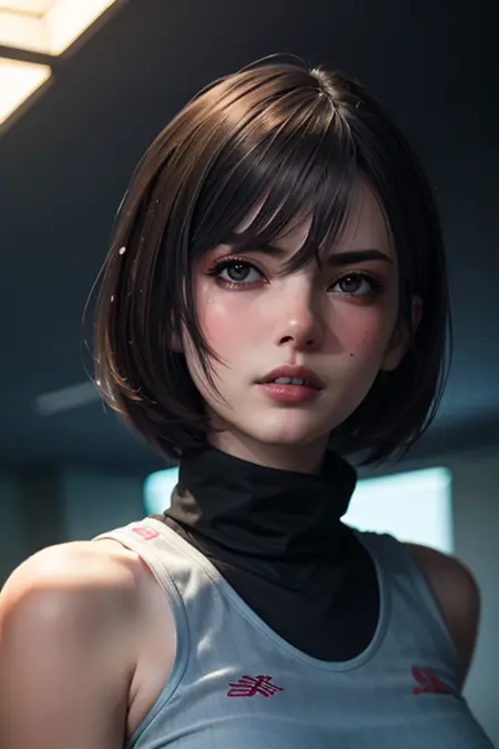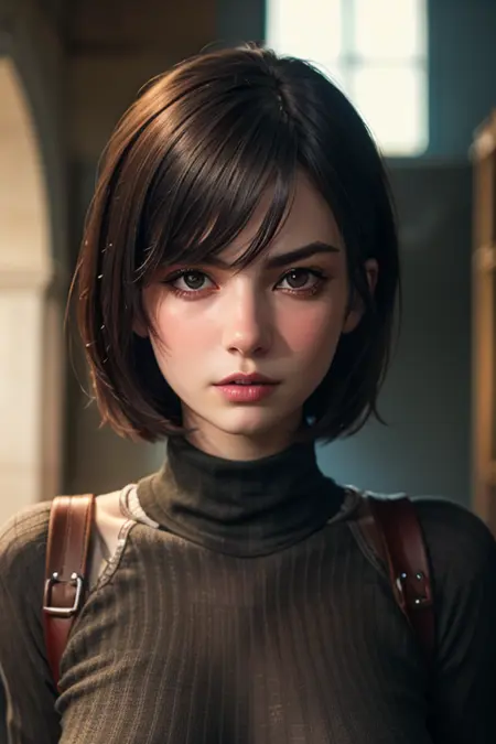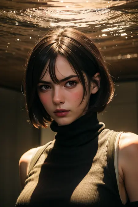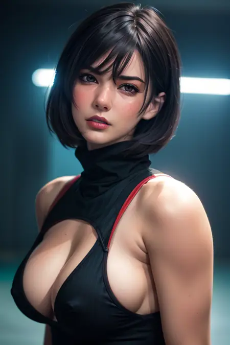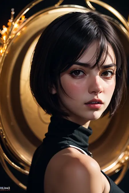 Prompt: A stunning intricate full color portrait, wearing a black turtleneck, large breasts, epic character composition, alessio albi, nina masic, sharp focus, natural lighting, subsurface dispersion, f2, 35mm,