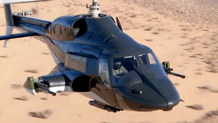 『에어월』의 허구적 세계에서 이 헬리콥터는 물리 법칙을 초월해 “초음속 하이브리드 항공기”로 변모했다. 가장 비현실적인 능력은 주 로터 날개를 분리하고 이중 “터보 스러스터”를 작동시켜 마하 1 이상의 속도로 비행하는 것이었다. 이 허구적 기체는 압력 유지 상태에서 최대 10만フィ트까지의 극한 고도 비행도 가능했으며, 민간용 헬리콥터를 다목적 고고도 정찰기로 탈바꿈시켰다. 허구적 무장도 마찬가지로 인상적이었으며, 강력한 공격 및 방어 시스템을 갖추고 있었다. 이 무장은 근거리 전투용 날개 장착 .50口径 기관총과 40mm 포를 포함하였고, 장거리 공중 및 지상 공격용으로 다양한 공대공 및 공대지 미사일을 탑재했다. 위협에 대응하기 위해 이 헬리콥터는 “탄Bulletproof” 동체와 “레이더 흡수성 표면”을 갖추고 있으며, 차폐막과 불꽃 유도탄 같은 대응 조치를 발사할 수 있었다. 이러한 고도로 기술적이고 구체적인 허구적 능력들은 1980년대 부상하던 군사 기술을 반영한 것으로, 현실의 욕망과 영화적 환상이 결합되어 탁월한 기술적 걸작을 창조해냈다.