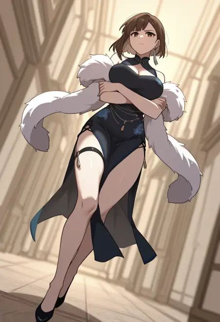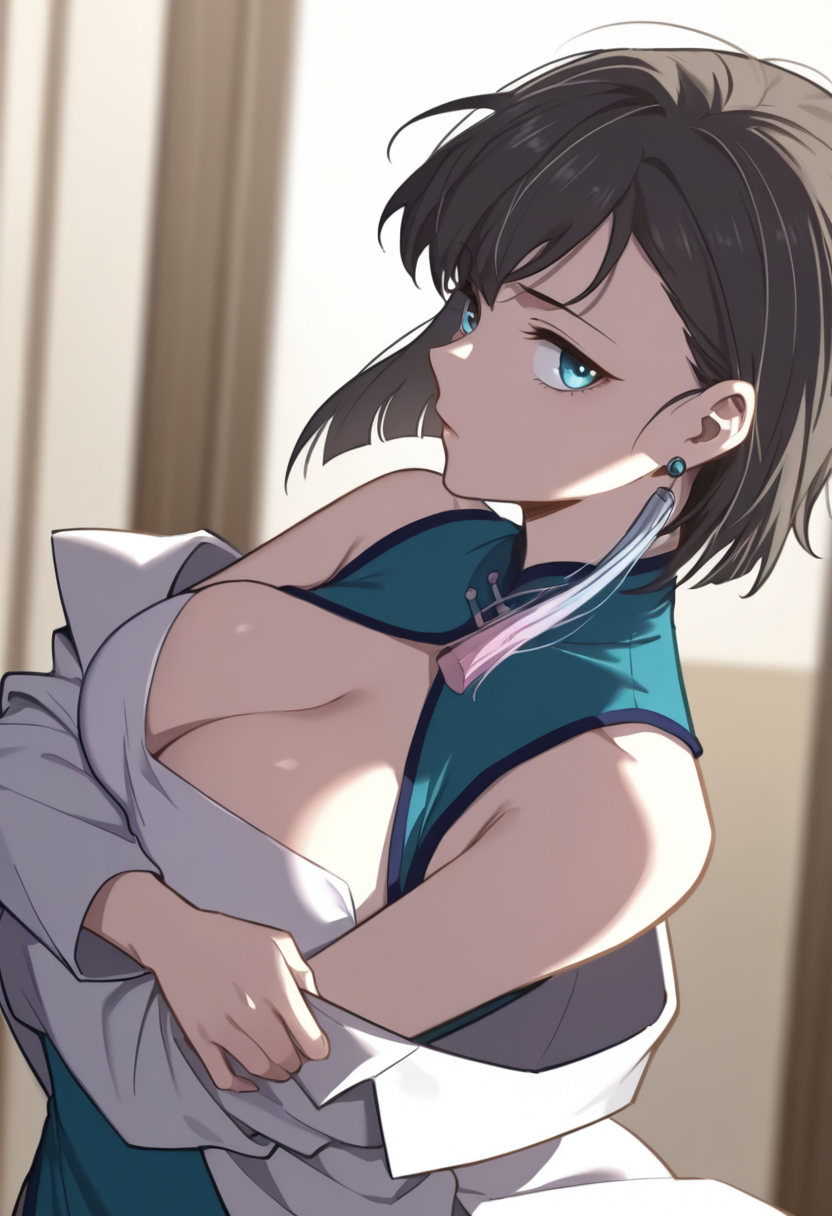 | 训练词汇 | helingsu, 1girl, solo, short hair, large breasts, black hair, bob cut, jewelry, tassel earring, purple eyes, pink eyes,已复制! dress, bare shoulders, sleeveless, off shoulder, clothing cutout, blue dress, chinese clothes, cleavage cutout, china dress, lab coat,已复制! dress, cleavage, necklace, black dress, clothing cutout, thigh strap, chinese clothes, cleavage cutout, china dress, side slit, feather boa已复制! |