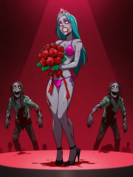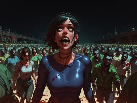 このスタイルのゾンビは昔から好きでした。メインキャラクターの素晴らしいLoRAが既にいくつかあるので、今度は彼らが戦える対象ができました。 :)