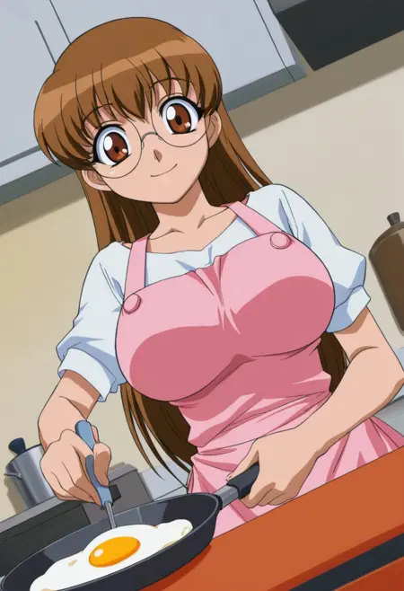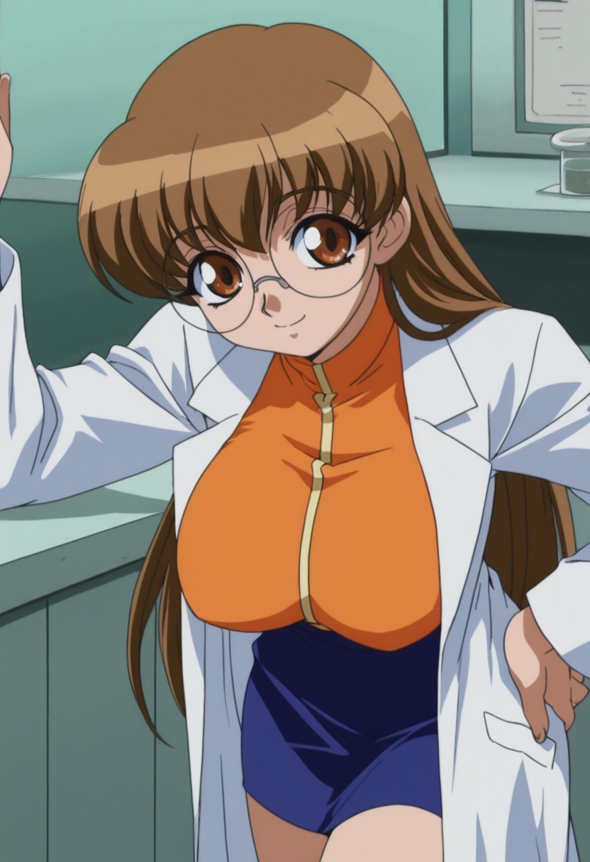 触发词: yayoi、棕色头发、长发、圆框眼镜、红棕色眼睛、大眼睛、明亮的眼睛、巨乳、