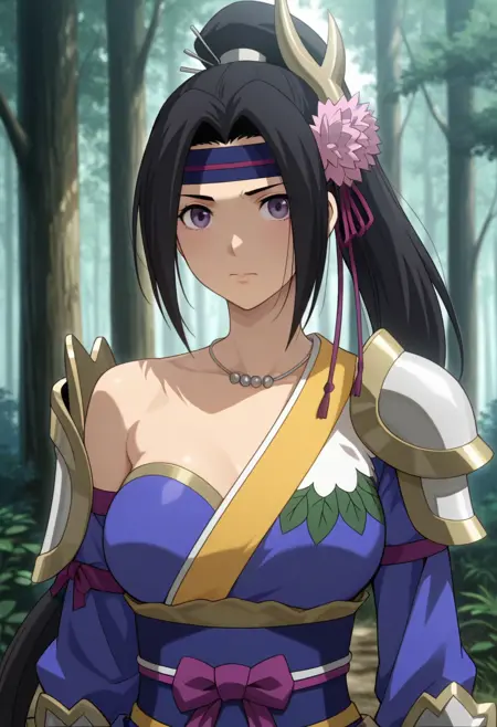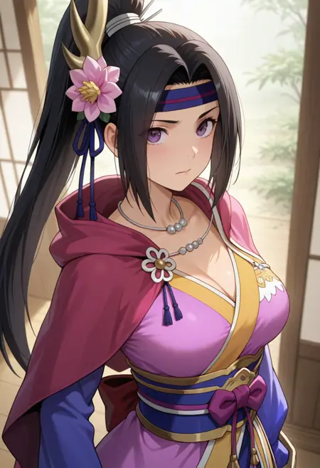 :inahime sanada,长发,马尾辫,黑发,紫色眼睛