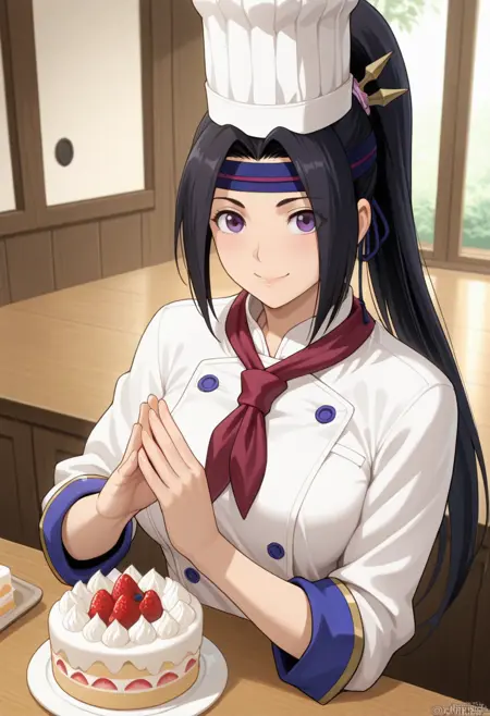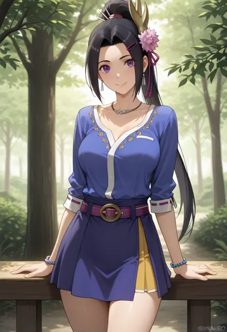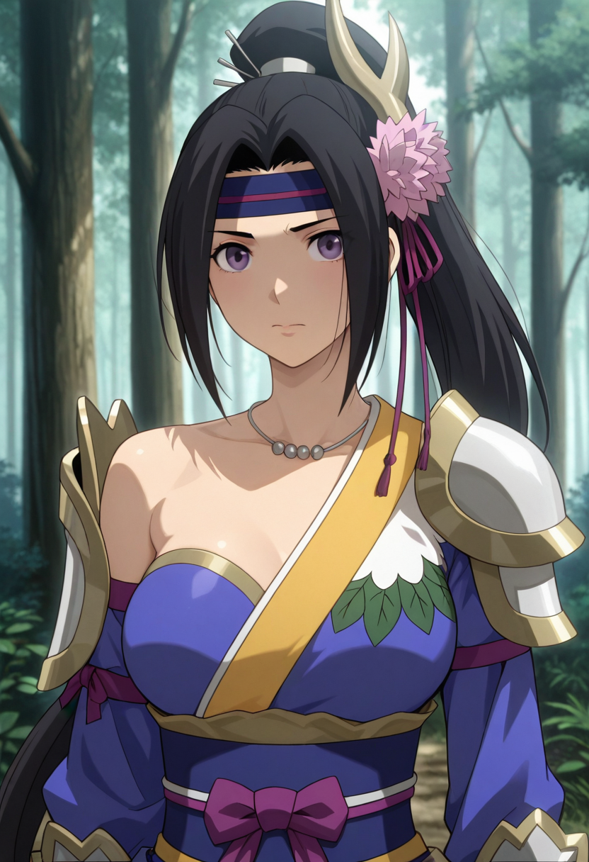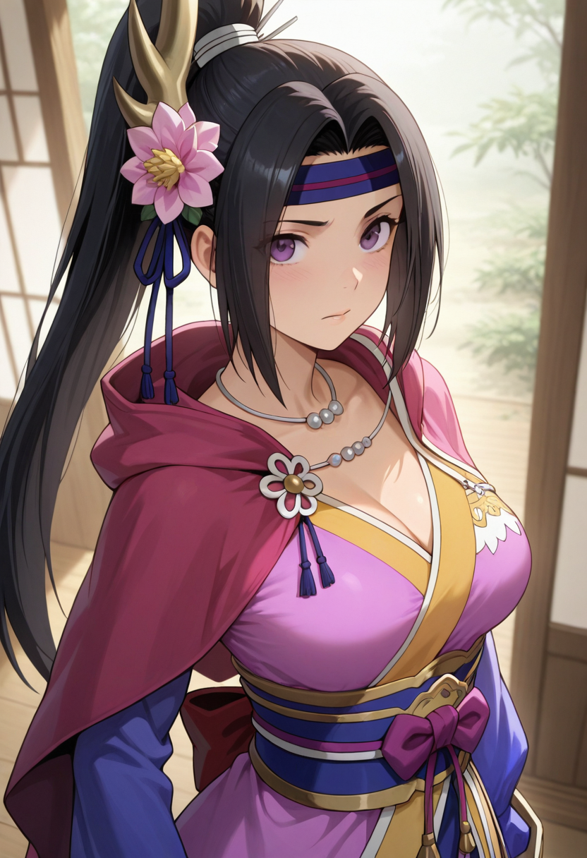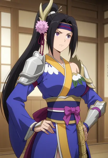 : inahime sanada、ロングヘア、ポニーテール、黒髪、紫の目