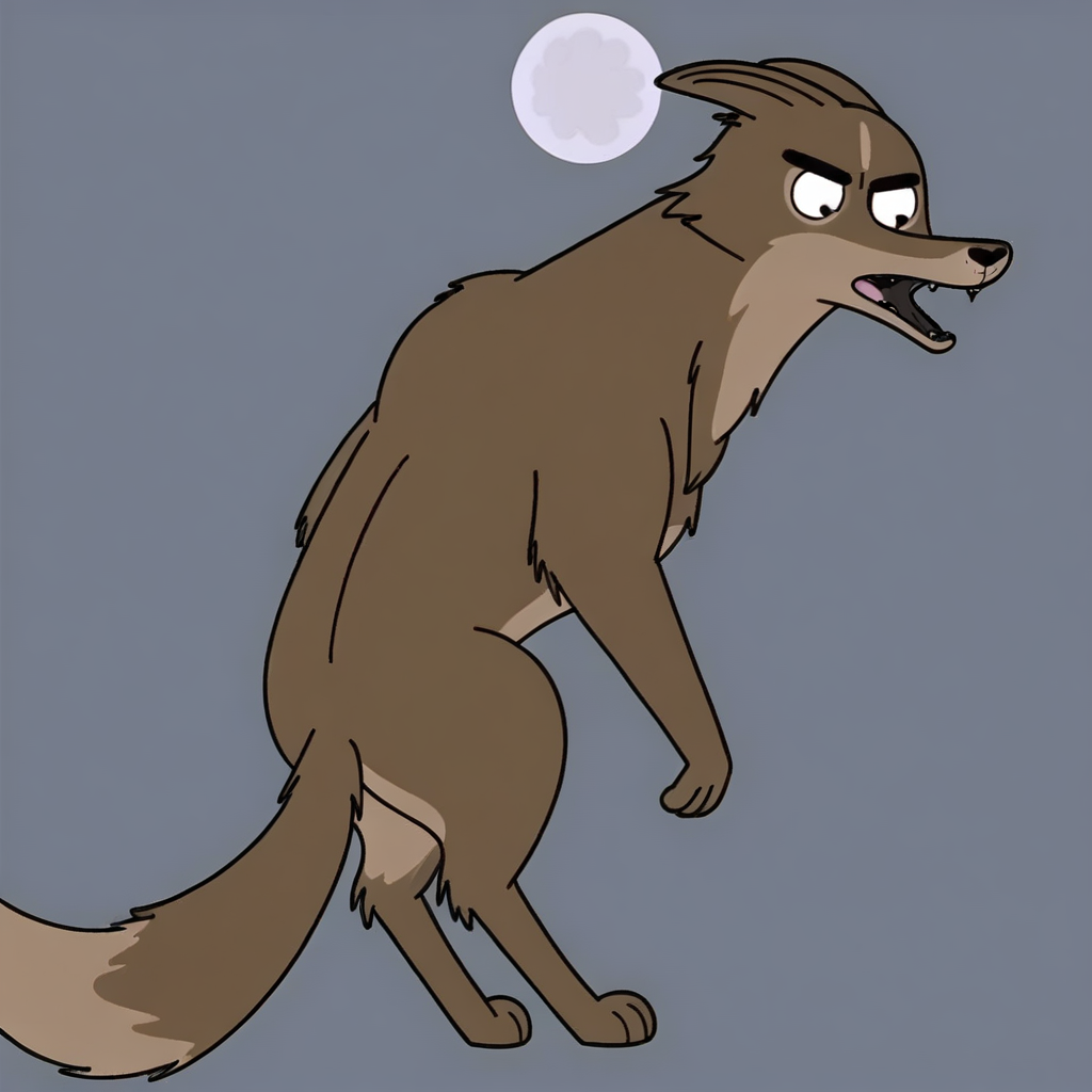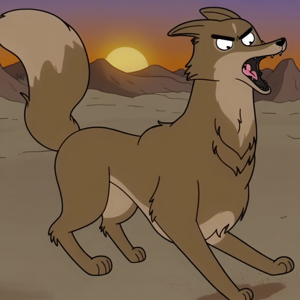 プロンプト: ブラウンのコヨーテの親戚、野生、単体、