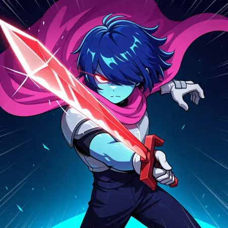 通用(暗色)外观标签:蓝发,短发,彩色皮肤,蓝皮肤,白手套,斗篷,围巾,盔甲,