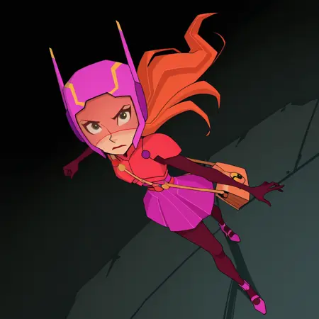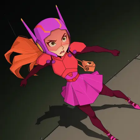 HL, 1소녀, 여성, 키가 크다, 주황색 머리, 검은 눈썹, 녹색 눈, 빨간 립스틱, 헬멧, 빨간 레이스, 빨간 갑옷, 진한 자홍색 바디수트, 분홍색 치마, 주황색 핸드백, 빨간 벨트, 분홍색 하이힐